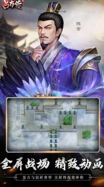 三国乱世起烽烟,吕布挥师踏中原,兵种进化强战力,战棋对弈谋为先,玩家扮演吕布,带领专属军队在三国乱世征战,需要在棋盘式地图上移动部队,精准利用兵种克制关系排兵布阵,打赢每一场战役,兵种可以进化升级,玩家能打造专属强力军队,搭配将领技能,体验不一样的三国征战故事,三国烽烟燃不息,吕布挥师破万敌,战棋对弈藏谋略,带兵征战乐无极。