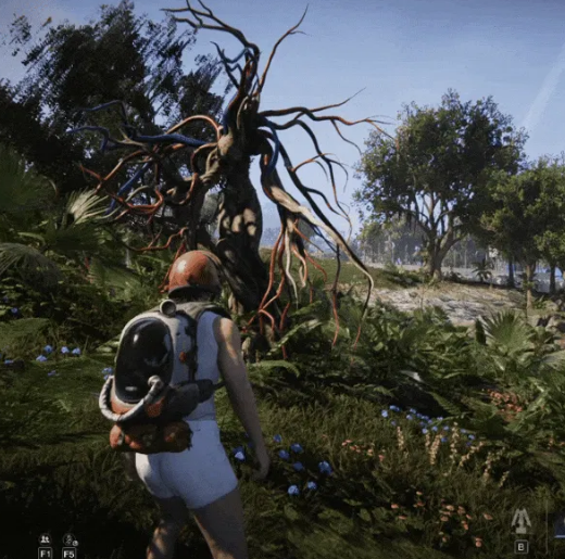 第一种新怪物叫拟态树。顾名思义,它平时就长得跟普通树一样,站在林子里完全看不出来有什么异常。星尘渗透进树木之后,这些树慢慢发生了变化,开始有了一些像人的特征。不过它本身的战斗力并不强,主要靠的是幻觉。它会持续向周围散发星尘能量,让附近的生物产生幻觉,视觉和听觉都会受到干扰。
