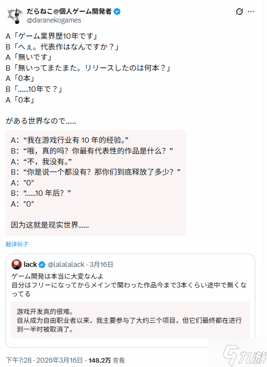 不少日本自由职业开发者表示,项目被砍对他们打击很大:几年工作直接归零,因为游戏没上线,无法写进作品集,影响接活。