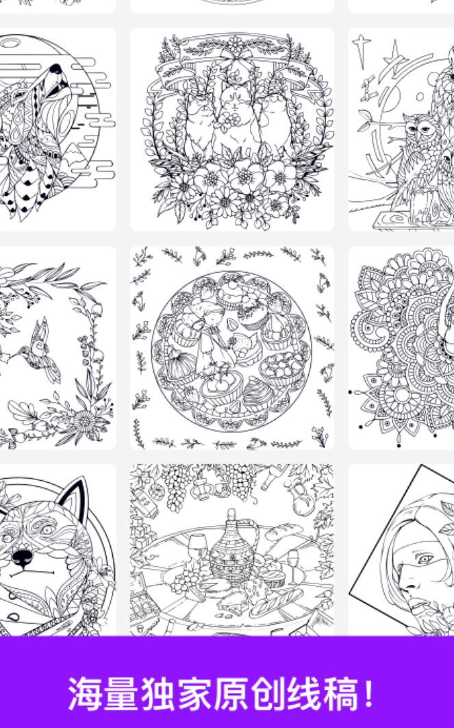 主打个性化创作入口,支持从本地相册导入任意照片并实时生成专属线稿涂色页,赋予数字绘画更强的情感联结属性。基础工具集涵盖油漆桶、记号笔、钢笔等常规选项;压力感应画笔可依据按压强度动态调节线条粗细;内置20余个主题色盘与160+种标准色彩,支持自定义色值输入与线性渐变填充;独有线条矫正算法对运笔抖动进行毫秒级平滑处理,显著提升手绘稳定性与成品精度。