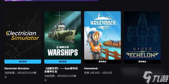 Epic本周免费游戏正式公布,电工职业模拟游戏《电工模拟器》和《战舰世界》Epic周年纪念橘号礼包免费领取,活动截止到3月26日23:00。Epic下周送出《Havendock》和《Hyper Echelon》>>>点击前往领取