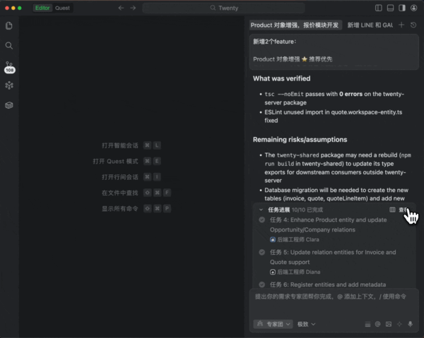 Experts Mode可根据需求自动组建AI工程专家团,多专家并行协作,高效产出高质量成果