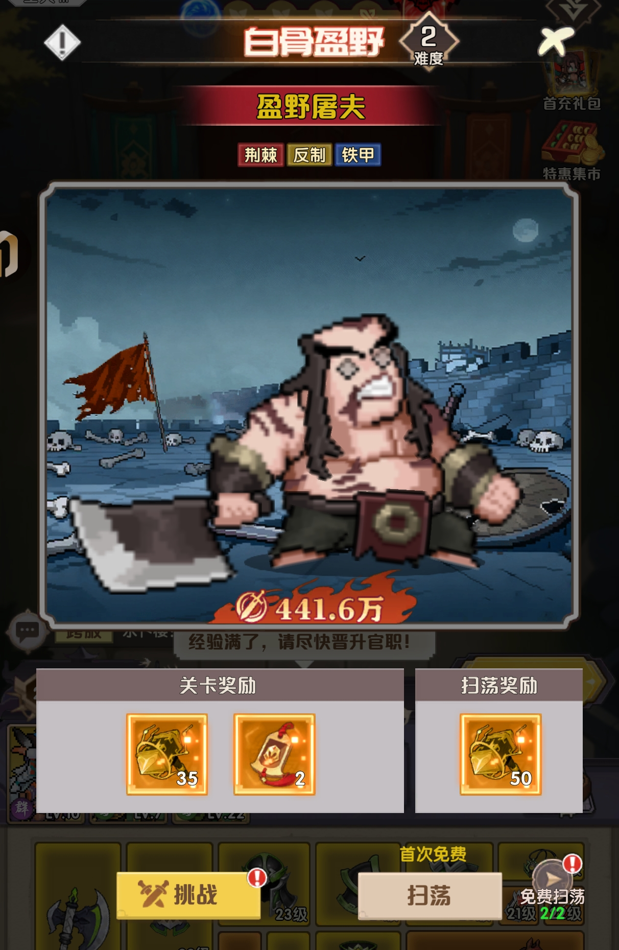 挑战无资源消耗,获胜即可领取通关奖励,更有每日扫荡福利加持 —— 首次扫荡免费,后续可消耗货币或观看广告追加次数,扫荡费用随次数逐步提升。关卡奖励与扫荡奖励均包含大量战锤,助力主线挂机与战力提升,同时通过扫荡货币消耗区分成长节奏,满足不同玩家需求。