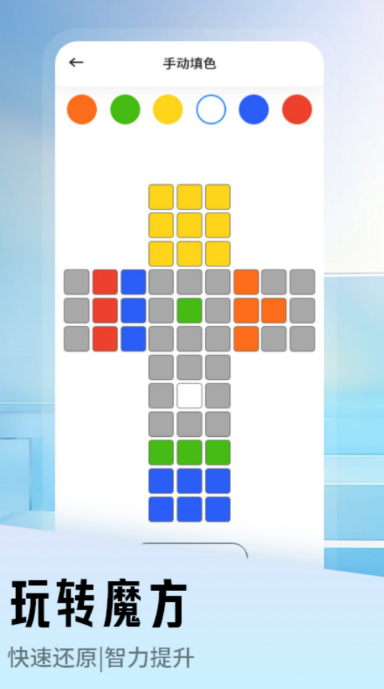 针对零基础用户设计的智能引导型工具。通过“填色快解”功能,用户可快速录入当前魔方各面颜色分布,系统即时生成分步还原方案。对F2L、OLL、PLL等核心阶段提供图文+原理双维度解析,不仅说明转动顺序,更阐释结构逻辑与公式推导依据。关卡模式融合策略性解法,强调观察判断与步骤规划,杜绝机械重复。