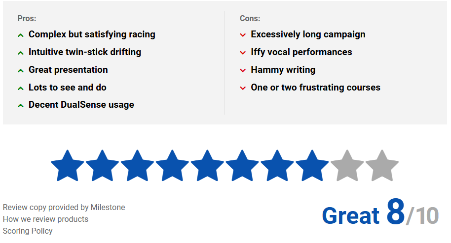如果非要用一句话形容《Screamer》,那大概就是——把《疾驰残影》和Crunchyroll动漫订阅锁在一个房间里关上一年,最后冲出来的东西。画面惊艳、结构自信,这是一款挑战性十足的街机赛车游戏,个性鲜明,独树一帜。当然,它也有自己的毛病:最蜿蜒的赛道几乎扼杀了高速快感,部分赛车开起来比其他的更飘,锦标赛模式的难度曲线有明显问题,那堆情感泛滥的动漫美男也很快让人厌烦。但话说回来,凭借细腻的双摇杆操控和意想不到的复杂战斗系统,这款游戏始终让你忙得停不下来。高度可自定义的快速比赛和四人分屏,也让它成为朋友聚会时一个相当拿得出手的选择。
