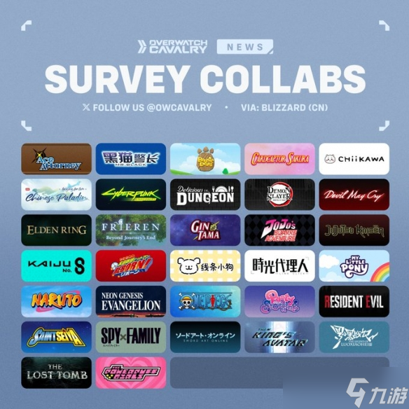 《守望先锋》中国服近日发布的一份玩家调查问卷引发关注,问卷中列出了高达32款知名ACG作品,用于调查未来的潜在合作意向。名单涵盖《赛博朋克:边缘行者》《葬送的芙莉莲》《艾尔登法环》以及《吉伊卡哇》等热门IP,在中国及欧美玩家社群中引发广泛讨论,也让玩家对未来的联动皮肤充满想象。
