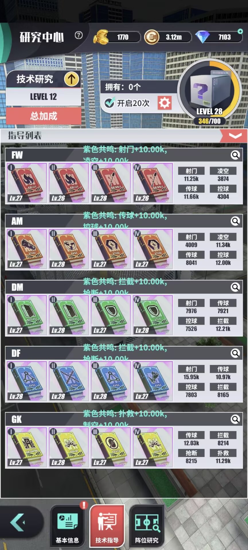 研究中心:这个最简单,建筑不用着急升级,前期点到2级3级就够用了,我这玩了快一个月,3级都够用了。技术研究,开启宝箱时注意别一直20次就行,有时次数可能会溢出,浪费了宝箱个数,毕竟每级的提升都不小。还有,这里有个BUG。个别指导书开出来之后,虽然比已使用的属性差,但是显示却是提升,这里一定要注意,点了替换就会喜提战力降低。每个位置凑齐蓝色以上的,都有套装效果。这里没什么技巧,有箱子开就是了……