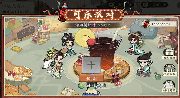 后期的玩法就很有挑战性,可以解锁外卖系统,招募外卖小哥,然后去拓宽销售的渠道。研发现代改良商品,让汽水还有奶茶可以走进盛唐的街头,用新潮的玩法去吸引顾客。遇到卡关的时候不用慌,可以升级店铺的设施,还有红颜,可以迅速的提升赚钱的速度。另外元宝还有商会贡献必须要合理的使用,优先兑换实用的道具,没有必要去浪费在这些非必要的地方。游戏比较吸引人的,那就是稳步成长的成就感,没有必要选择氪金。
