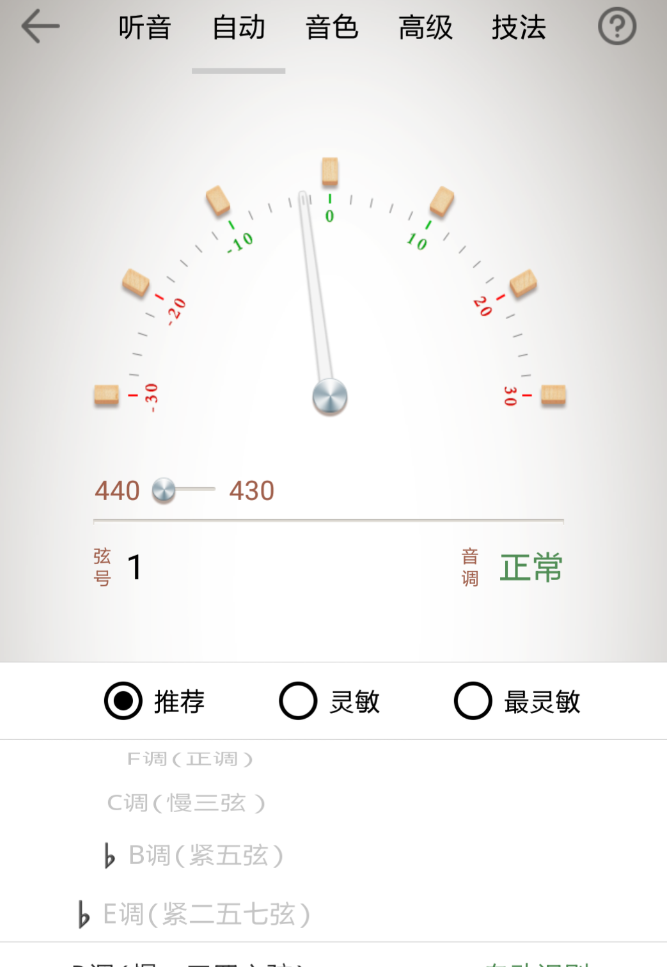 古琴的调音需求和其他弦乐不太一样,通用工具往往识别偏慢,这款基于古琴真实音色采样做了针对性优化,定弦识别速度和准确率都有明显提升。调音模式多达七种,初学模式有分步提示引导,专业模式提供精准数字指针,十二平均律模式满足高精度需求,不同水平的用户都能找到适合自己的设置。