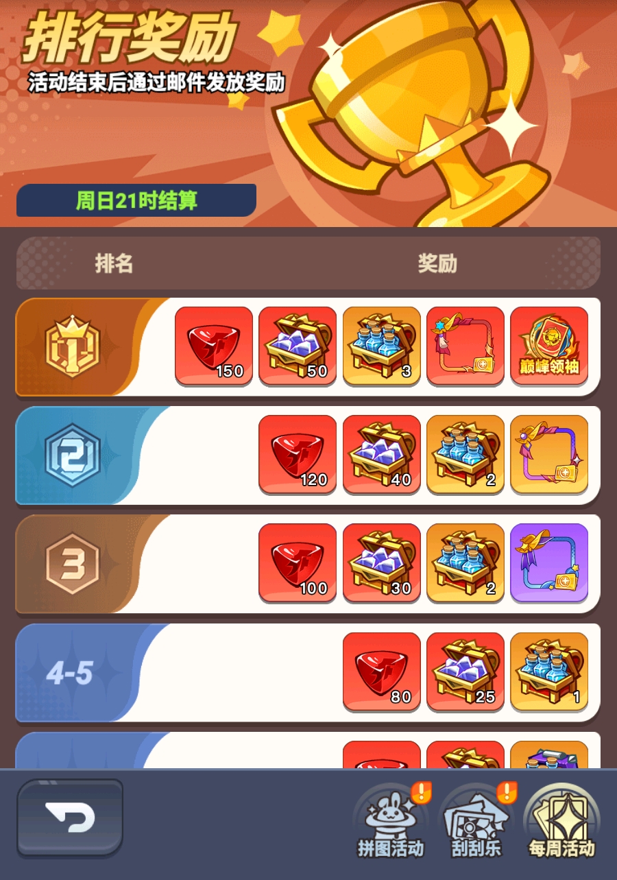 此外,每周活动中的格斗家招募也是玩家们能获取血晶的途径之一,它是一个周期性开启的活动,也会与其它活动轮回,所以在获取效率上没那么稳定,但因保底奖励的存在,也令玩家不可将它错过。参与该活动时,玩家们可通过招募格斗家、消耗格斗家碎片来获取积分,只要参与就能保底拿到2枚血晶的奖励。倘若玩家们获取的积分较多,排进了全服前200名,则能拿到更多的奖励,其中位列第一名的玩家在结束时,可获取足足150枚血晶。格斗家招募会在周日晚21时进行积分结算,在此之前的招募才会被计入分数,过时再招募则不会再增长积分,结算完成后玩家们便能从邮件里领到自己的排名奖励。