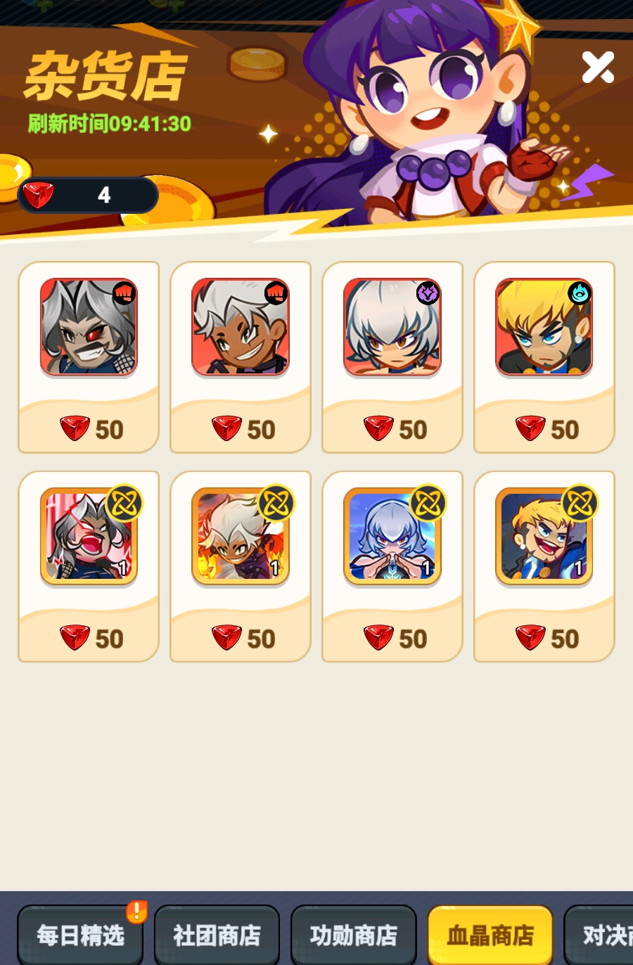 获取血晶后,玩家们可在血晶数量积攒到50枚时,前往血晶商店兑换自己想要的SSR格斗家,也可为已有的SSR格斗家兑换他们对应的奥义。目前此作可兑换的SSR格斗家共有四位,分别为大蛇、卢卡尔、库利扎里德和高尼茨。比较建议玩家先完成高尼茨和大蛇的兑换,毕竟高尼茨低星就可用,以他为核心的灵契队强度也很高,而大蛇则是有着很强的群攻能力,是很多阵容中的输出核心。
