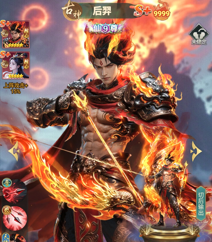 在星级较高的情况下,后羿更是能获得多种增伤手段,能进一步强化自身的输出能力。九星时,后羿的怒气技将会在任何情况下都能额外获得20%的伤害提升效果,若是能将他升至真仙1重,那后羿还能对生命大于30%的敌人造成额外的40%伤害,能让他更快地通过后排群攻来对敌人造成有效杀伤。一旦后羿的星级来到真仙3重,后羿还可在自身生命大于50%时,再让怒气技的伤害额外提高45%,反之,当后羿生命小于50%,还能通过怒气技来回复自身的血量,令他在极端情况下也有着不错的自保手段。