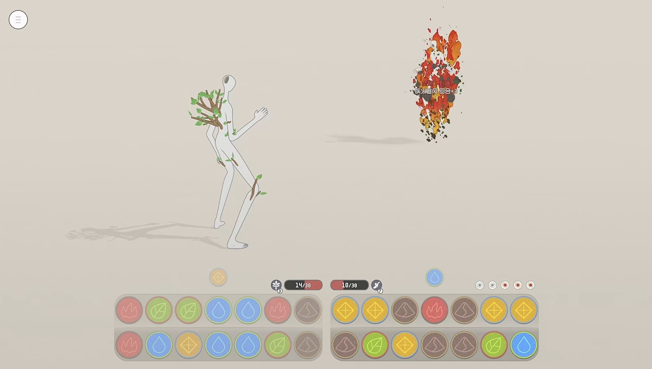 战场采用双行布局结构:上行为敌方区域,下行为己方区域。不同五行元素在此间流转互动,彼此激发、抑制或转化,从而衍生出丰富的连锁反应。视觉呈现方面,虽未追求极致画质表现,但战斗动画细腻流畅,技能释放效果随消除组合动态变化,五行特性通过色彩、音效与粒子反馈精准传达,增强沉浸感与辨识度。
