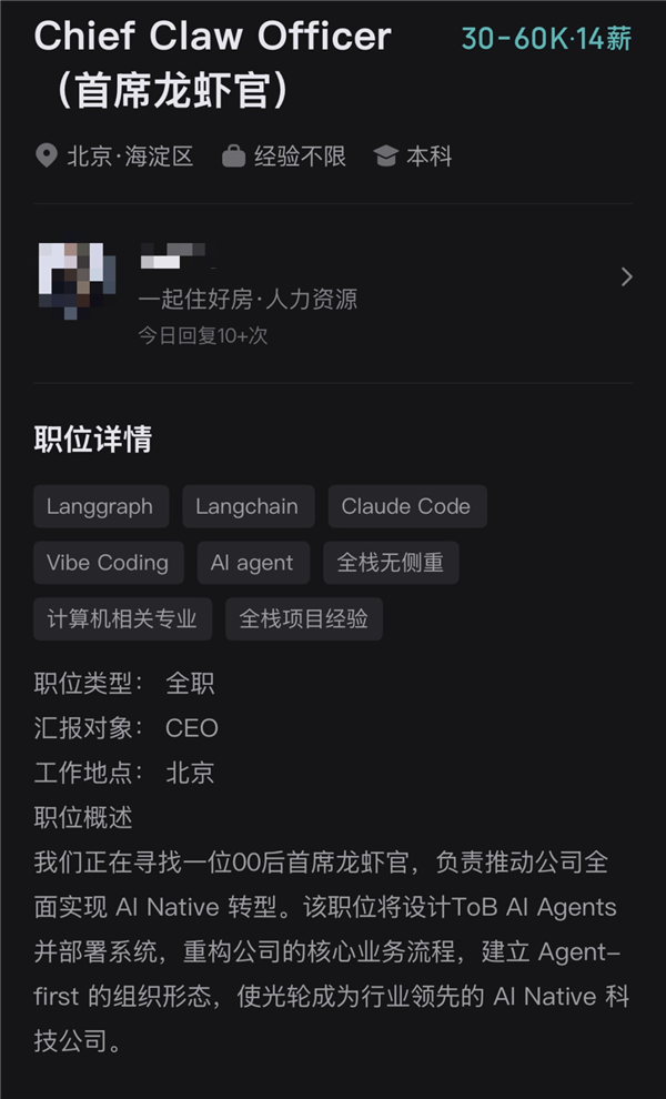 有意思的一点是,这家公司明确希望这位「首席龙虾官」,是00后。