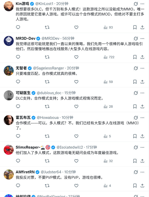 对此,国外玩家表示不要多人模式,但可以加入合作模式,但非要二选一的话,更想要一个扎实的单人游戏DLC。