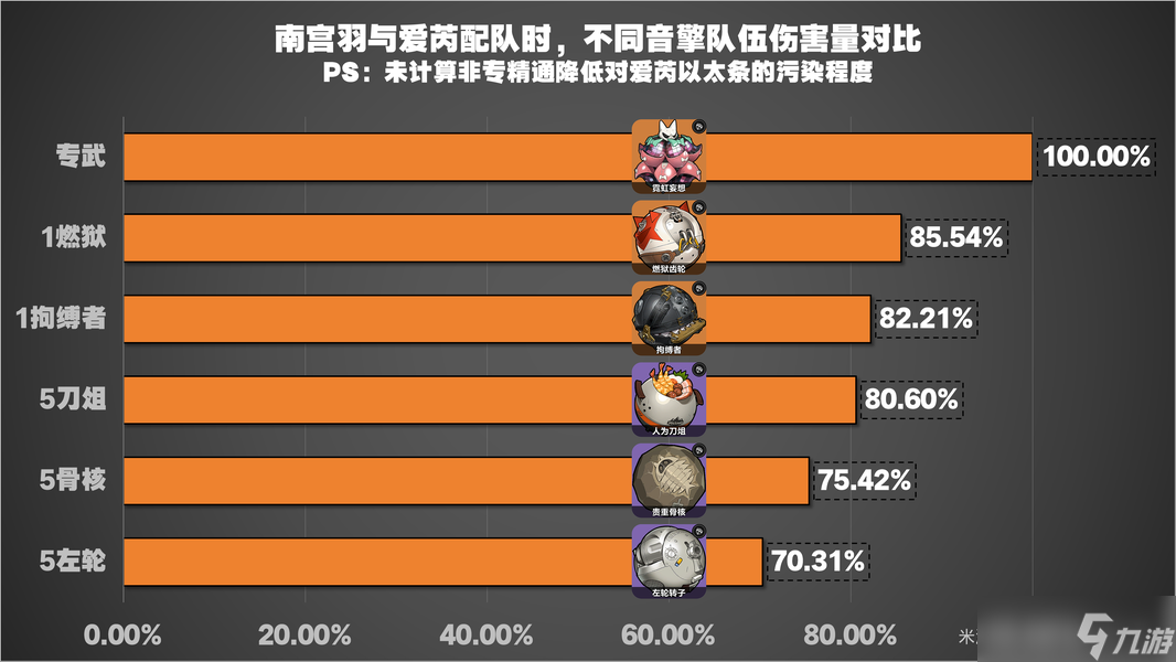 注意:这里并未计算非专的精通降低对爱芮以太条的污染,所以实战中,如果你南宫羽参与的以太条越多,非专南宫羽对队伍的总伤会进一步降低,总而言之,如果你南宫羽准备跟爱芮一队的话,还是比较建议搞一个专武回来的。