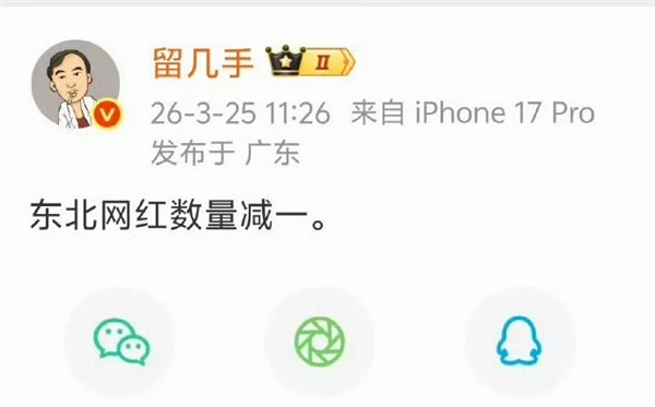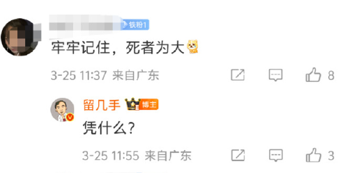不过,与悼念氛围形成反差的是,微博拥有1300万粉丝的网红留几手因不当言论引发争议。