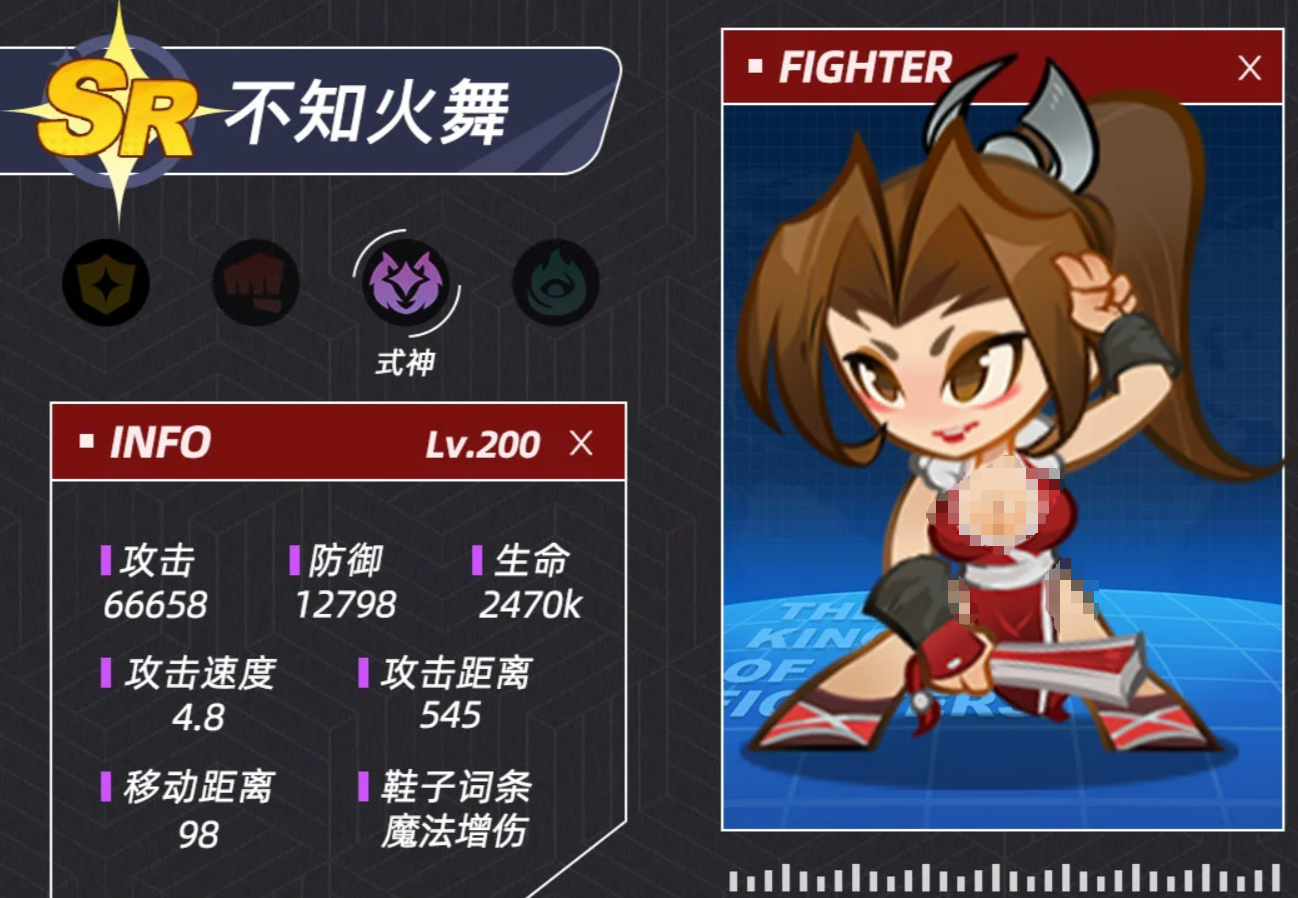 队伍也并不是只有控制这一类型,选择主要为输出的阵容,在实战中也有一定的价值,但是如果是选择输出的阵容,那么小编还是非常推荐玩家们搭配上红丸等角色,这样不仅可以让玩家们可以在法术和承伤能力方面大大提升,还可以增加队伍的击杀效率,当然与红丸搭配的角色,玩家们第1个可以选择草薙京进行协同,能够让队伍的韧性更强。随后在队伍中也可以让琼和不知火舞互相联合,这样能够在单体击杀方面更具优势,当然玩家们如果有其他技能联合更加合适的角色,也可以加入在队伍之中。