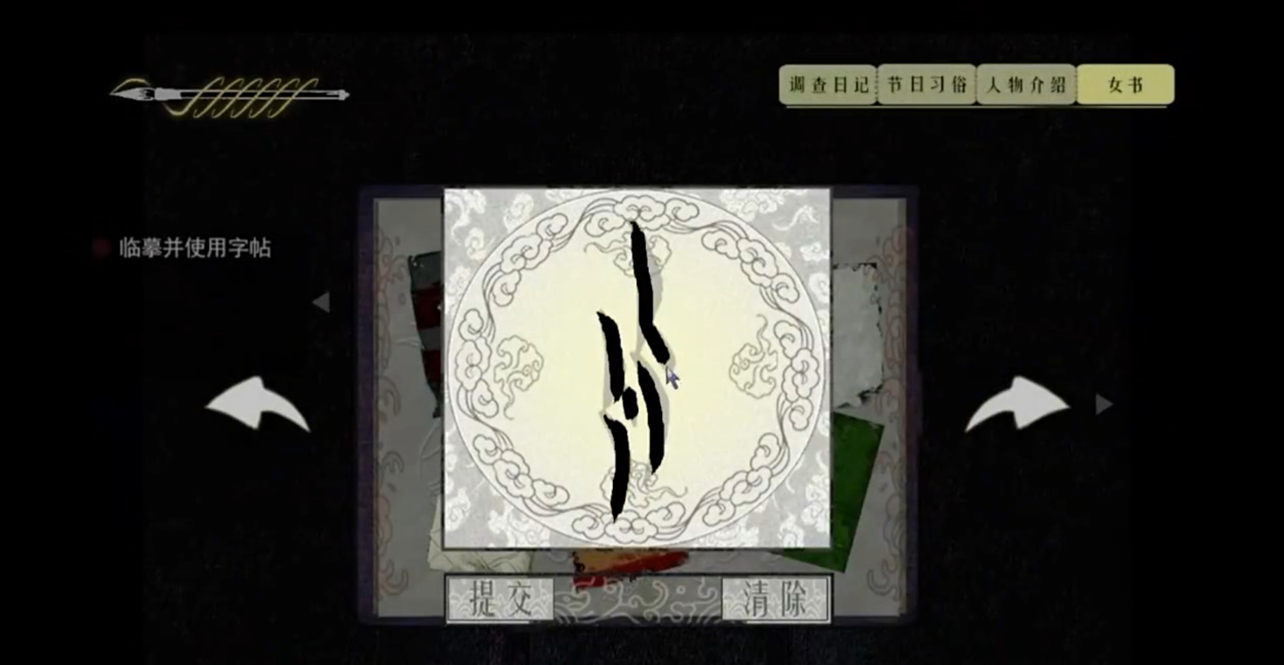 游戏主线围绕一名普通女大学生展开。她在一次返乡途中意外卷入一段尘封已久的家族往事,随之开启跨越时空的解谜旅程。操作设计极简,无复杂数值养成与重复性任务,核心体验聚焦于逻辑推演与信息整合——玩家需通过对话线索、环境细节、文本隐喻等多元信息源,逐步还原事件全貌,并在多位性格迥异的角色之间辨识立场、判断动机、揭开隐藏身份。每个角色背后都承载着与女书文化密切关联的历史切片,构成兼具文学性与考据感的叙事网络。
