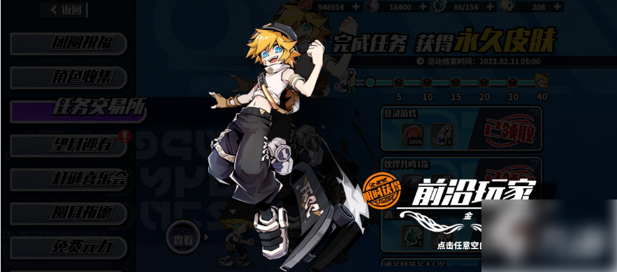 最后主角的皮肤一定是玩家不容错过的,前沿玩家皮肤,活动藏在福利里面,在任务交易所的界面完成任务获取四十点积分白嫖前沿玩家的皮肤,当然除了这些还有很多的皮肤不过大多需要付费而且有的随着活动限时推出,需要抽奖才获取,当然皮肤没有属性加成,怎么出都没啥影响。