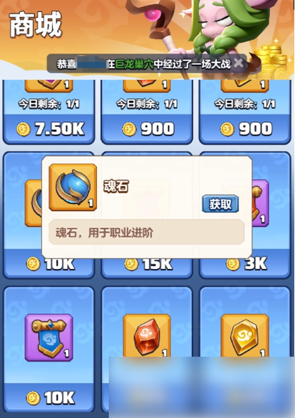 然后这里还设有商城,提供抽卡、锻造材料,针对性提升战力。有一些道具可通过金币购买,或者免费获得。大家可按需购买,如果追求更高性价比的话,就可优先选择一些高折扣的道具或者礼包,这样就不用花太多时间去刷副本。
