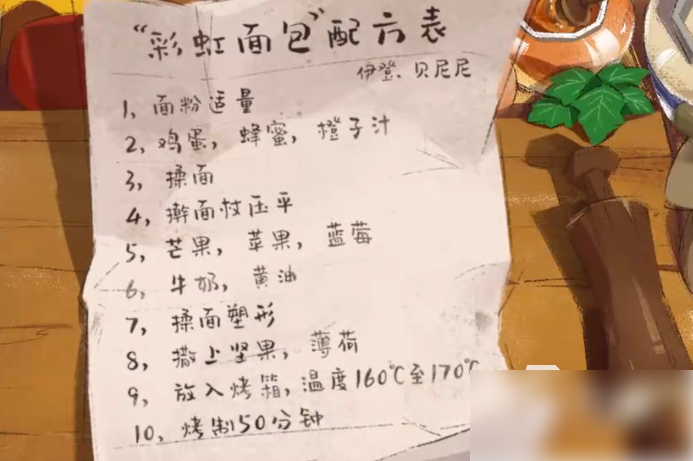 把蚯蚓给老板后,他会说和朋友关系不好不愿制作面包并走开,我们这里不能放弃直接跟上去,会回到他的住宅,跟着面包店墙壁上的线索749年把屋内的盒子打开,获取道具烟斗,将其给店长就能得到彩虹面包配方表,接着我们回到面包店后厨,注意好要彩虹面包的客人不放坚果,减去坚果的步骤按照配方执行即可。