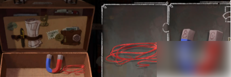 游戏中不管是磁铁还是红绳都是有着一定作用的,合在一起和分开皆有用处。首先小伙伴们可以打开这个道具,然后点击右边的第一个按钮使用,一般在场景当中会明确大家在某个位置使用,点击就会立即生效,没有用处的话就没有文字提示。