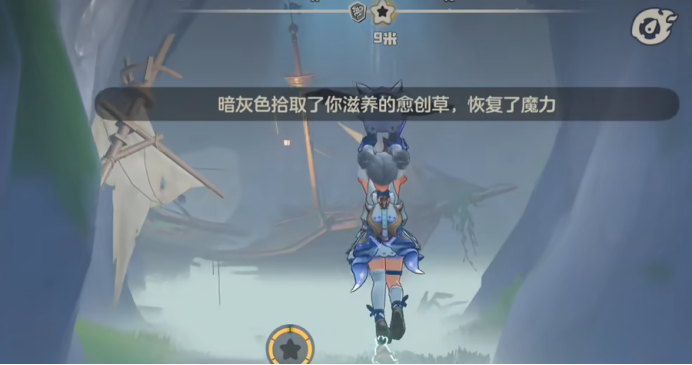 进了洞之后,里面的光线比较暗,视野不是特别好。往里走一段,会看到一艘破船停在那里,船身已经烂得很厉害了,看起来在这里停了很长时间。沿着山洞从这艘船旁边穿过去,继续往里走,走到尽头了以后,月兔暗港魔力之源的传送点就会出现在面前。传送点的附近,会有一个黑心商人,顺手把他打一下,打赢之后玩家会变成精灵的外形,这个状态在后续探索里面会用到,提前拿到比较方便。