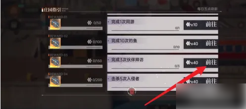 进入庄园指引界面,找到伙伴拜访任务点击前往