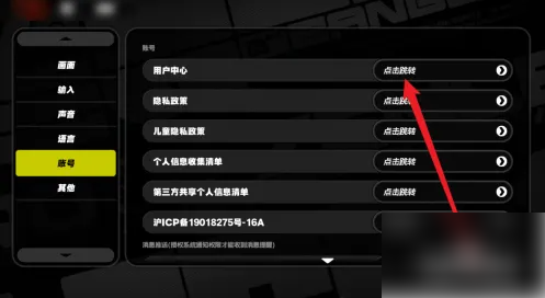 进入设置界面,点击跳转【用户中心】