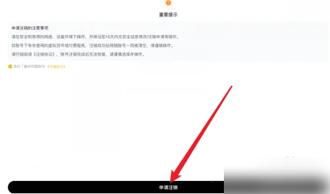 弹出重要提示界面,点击【申请注销】即可注销重开