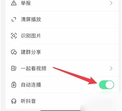 点击自动连播后的按钮开启,就可以连续播放下一条