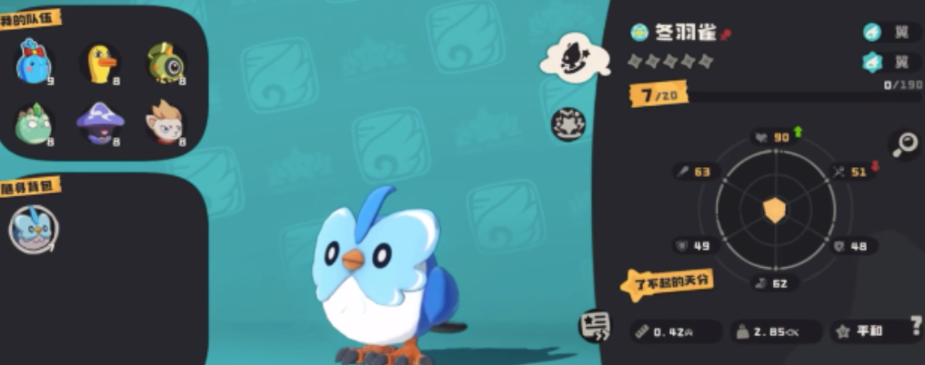 冬羽雀体型轻盈、机动性强,初始阶段即展现出优秀的飞行速度与闪避能力。经进化后可成长为青岚,整体属性与实用性显著提升,尤其适合资源有限的新手玩家。该精灵常出没于雪山区域及冰系主题场景,其中雪人谷为其高频刷新点。建议优先捕捉25级以上的个体,便于后续技能学习与资质培养,避免重复捕捉造成资源浪费。