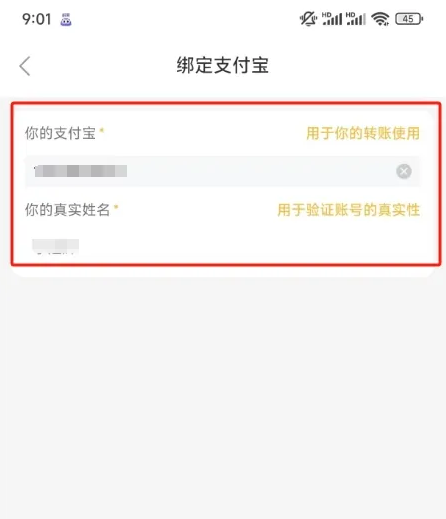 3、进入绑定支付宝页面,填写支付宝账号和真实姓名后,点击确认提交,绑定支付宝成功后,积分可以提现到支付宝