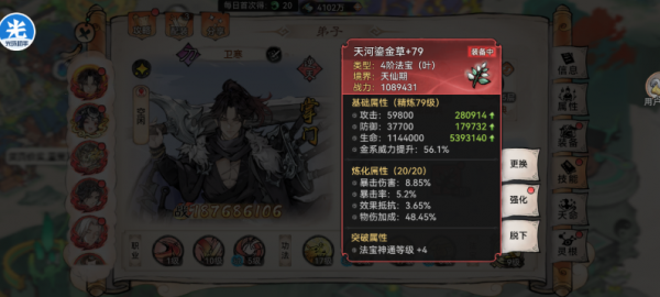 (4)法宝选择:4阶大金叶,炼化全部炼化全物伤加成(3阶水竹)