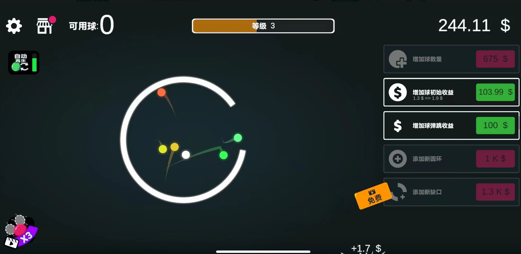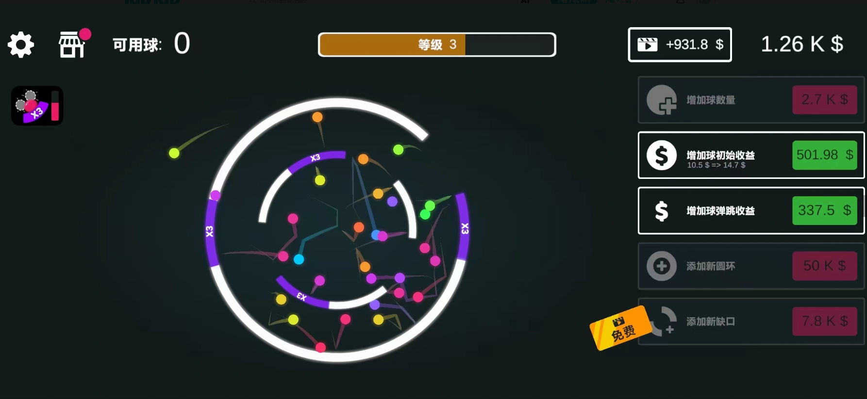 游戏中设有差异化功能砖块系统:红色砖块需连续两次击中方可消除;金色砖块被击破后将掉落多倍金币奖励;炸弹砖则可触发范围爆炸效果,一次性清除周围区域障碍。配合基础钢球、附带火焰特效的燃烧球、撞击后自动分裂的多弹头球等多样化弹球类型,显著提升策略性与随机趣味性。