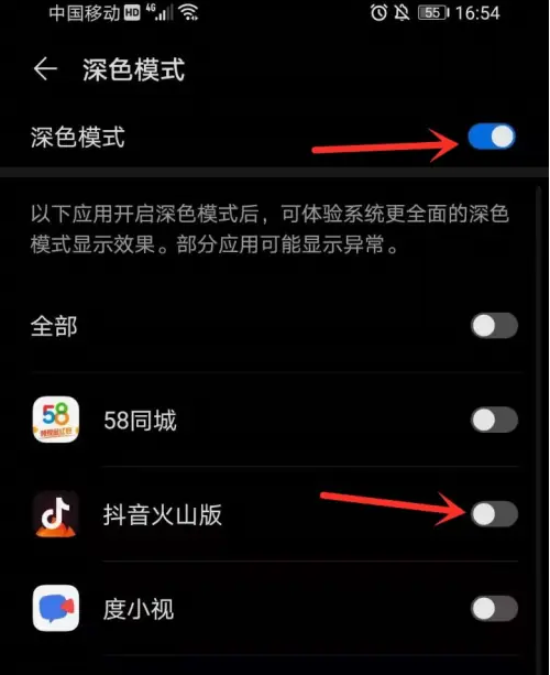 打开“深色模式”开关。