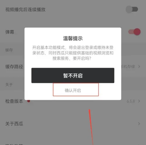 最后点击【确认开启】即可开启西瓜视频搜索视频功能