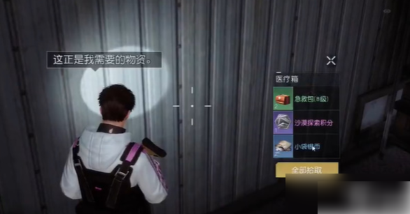 2,看到这个箱子后,查看并打开这个医疗箱,可以获得急救包8级x2、小袋银币x2、沙漠探索积分x1,这边车匪聚落第一个宝箱找到。