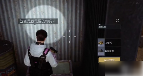 2,移动角色前进然后找到这个角落后,打开这个军械箱获取极奖励,粗制火药x1、小袋银币x2、子弹壳x40、沙漠探索积分x1,这边第二个箱子找完了。