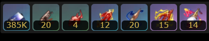 信用点×385000、童真蜡笔×20、纷争血尘×4、战魂血珀×12、造梦蘸钢×20、天谴血矛×15、梦现管锥×14
