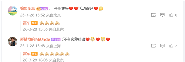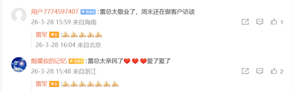3月28日消息,今日正值周六休息日,小米创始人雷军依旧坚守一线,深耕用户沟通。