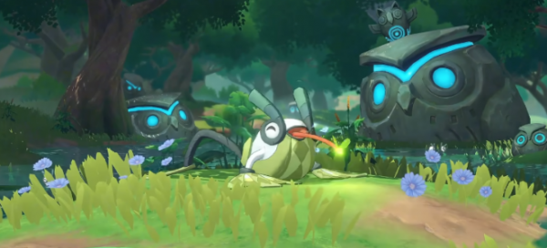 先说说这个小家伙长什么样。上岸蛙的设计挺巧妙的,全身的主色调,是那种生机勃勃的绿色,看着就很清爽。它的花纹有点像咱们平时见到的荷叶,四肢则是白色的,看起来干干净净。最让小编觉得有创意的地方,是它那四个脚蹼。设计团队没有按照常规的思路去画,而是把脚蹼做成了小荷叶的样子。这种把精灵长相,和它生活的环境融合在一起的做法,确实让它看起来更有灵气,感觉它随时都能找片水洼,蹦进去藏起来。