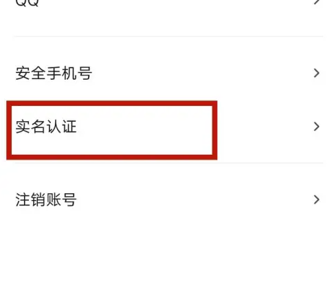 账号与安全页面,点击实名认证。