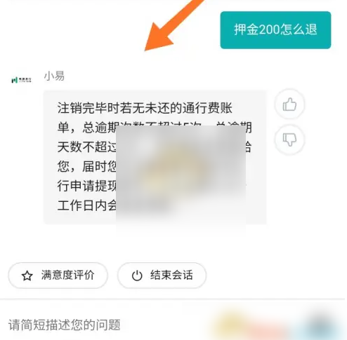 3、点击联系客服,如下图,发送押金200怎么退,看到客服的回复就知道怎么进行退款服务了
