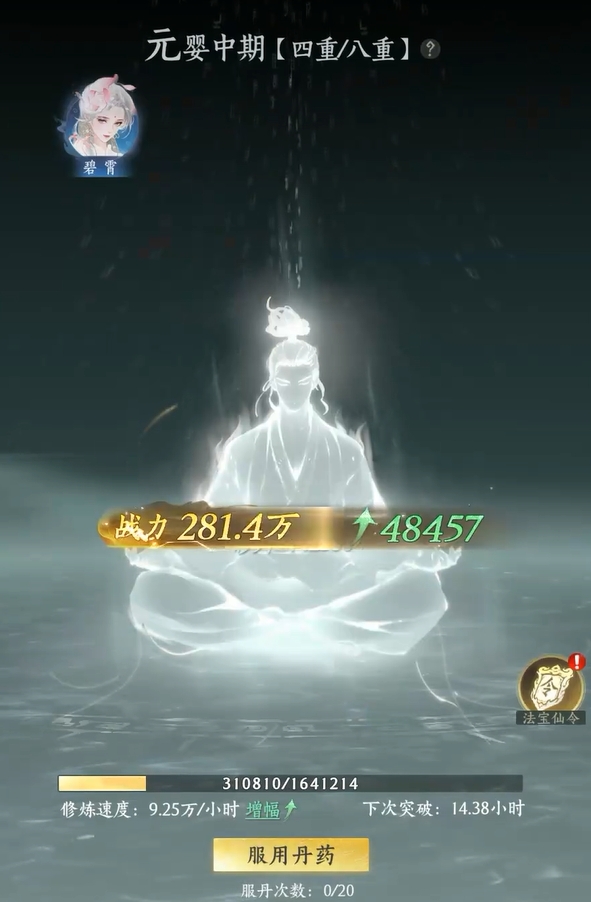游戏里的养成也比较简单,玩家们在炼气期时主要依靠丹药来提升修为,等到了筑基前期后,玩家除了能继续服用丹药来提高修为外,还能通过挂机来增长修为,等修为达到境界的上限后,便可进行突破。同时,玩家们还可通过消耗绝学心得,来提升绝学的等级,且绝学等级是可无损重置的,所以玩家们可在资源足够时,一直去升级自己所用的绝学,等解锁下一阶段更强的绝学后,再通过绝学重置拿回所有的资源,然后再重新去进行资源的分配。