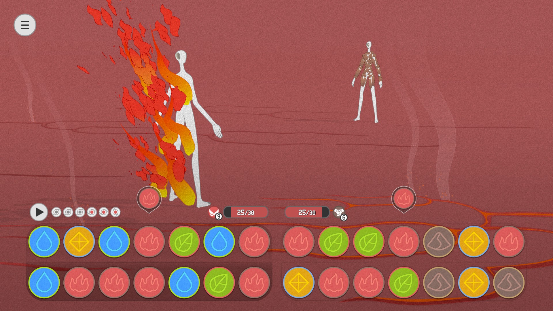 其实该游戏采用的是回合制策略对战类型的模式,在一局游戏当中,将会固定30个回合。整个游戏的节奏感比较强,开局的时候玩家可以自行选择五行的组合,不过玩家接下来的每一步操作都需要根据资源跟克制关系来做决定,此时大家需要布局思维,而且也需要深入的去了解整个游戏的机制,虽然在游戏中,策略性跟运气是并存的,但是整个游戏的耐玩性比较高。