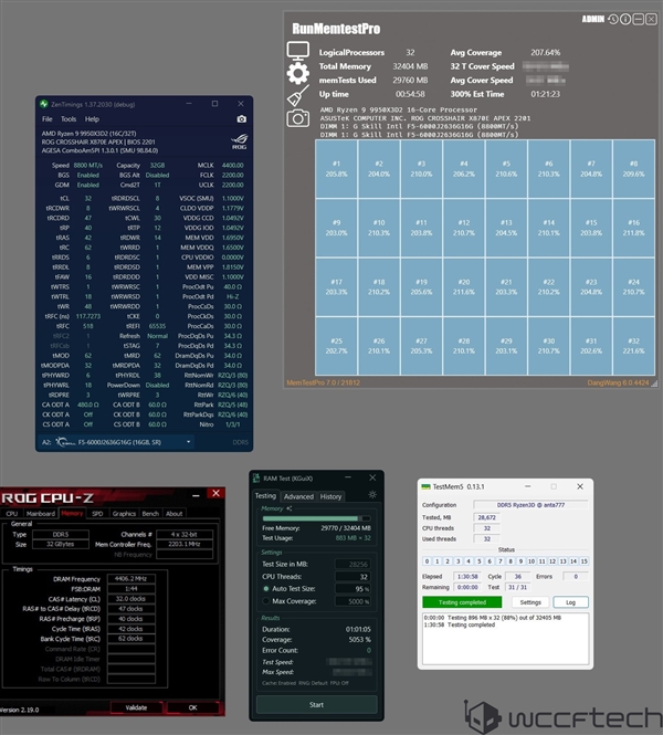 虽然我们见过DDR5-13000这样的极限超频,最新的酷睿Ultra 200S Plus也能跑在DDR5-1000,但是大家都知道,AMD锐龙平台对内存频率并不是特别敏感,要想大幅超频还是很难的。