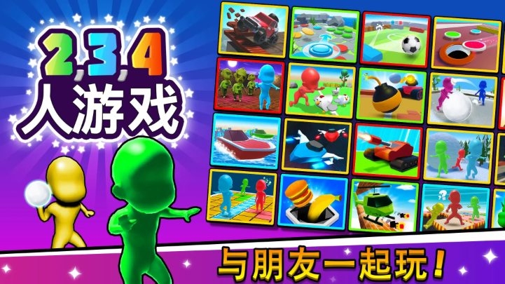 顾名思义,本作专为2至4人协作或对抗而设计,单机状态下可调用AI队友完成任务,联网后则支持跨设备实时联机。界面简洁直观,新手三分钟即可上手;任务系统丰富,含竞速、解谜、生存等多种玩法分支。卡通风格画面搭配轻快音效,营造出轻松愉快的互动氛围,是家庭娱乐与好友开黑的理想之选。