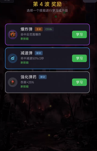 区别于传统线性塔防,《暗黑僵尸防线》深度融入Roguelike机制:每局对战中,系统将随机推送三组强化选项,涵盖全新主动技能、已有技能升级分支(如提升冷却缩减或扩大作用半径),以及弹药类增益效果。玩家需结合当前战况与长期成长路线,做出差异化决策——例如优先强化穿透伤害应对重甲单位,或选择群体减速保障后排输出安全。该机制确保每局体验独特且富有策略纵深。